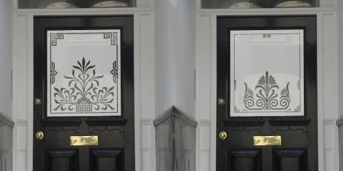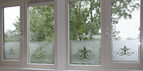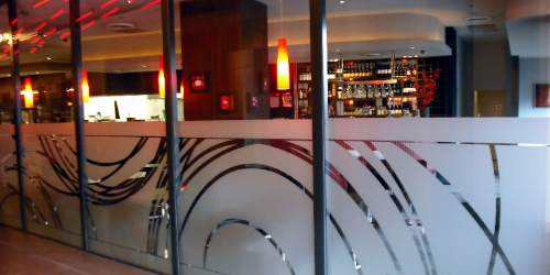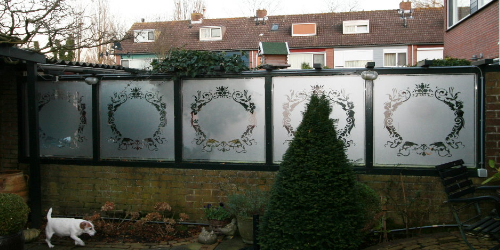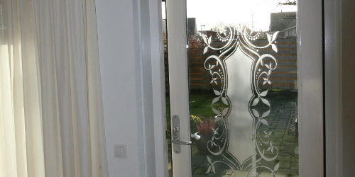 Voor decoratieve doeleinden wordt in de regel heel veel gebruikt gemaakt van het zo genoemde zandstraal effect, vaak samen in combinatie met gekleurd transparant vinyl levert dit vaak schitterende kunstwerken op!!!